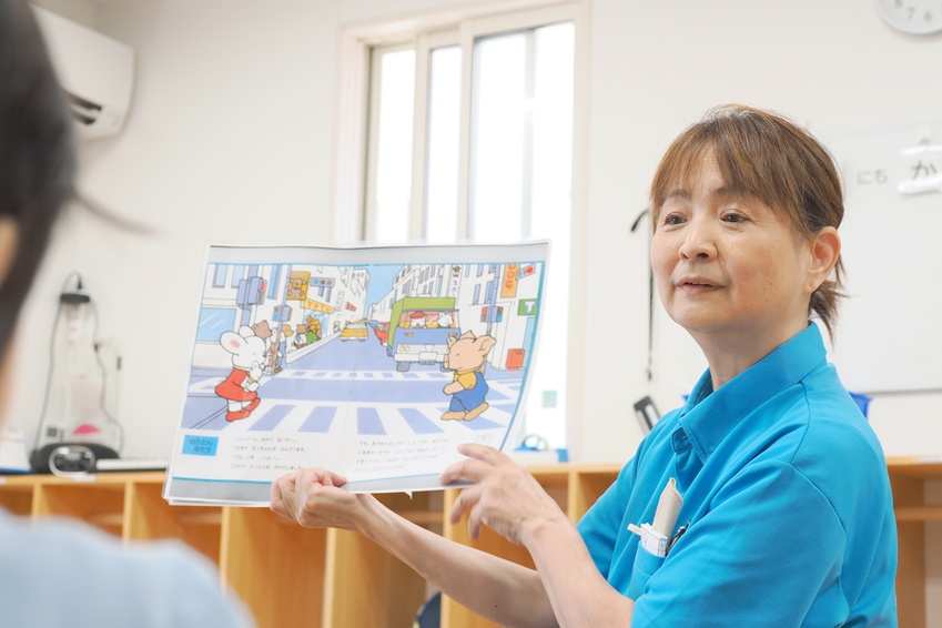 絵本や紙芝居の読み聞かせを行うことで、言語の発達や、表現力の獲得を目指しています。気持ちの表現の幅を広げ、コミュニケーションが活発になるような促しを行っています。