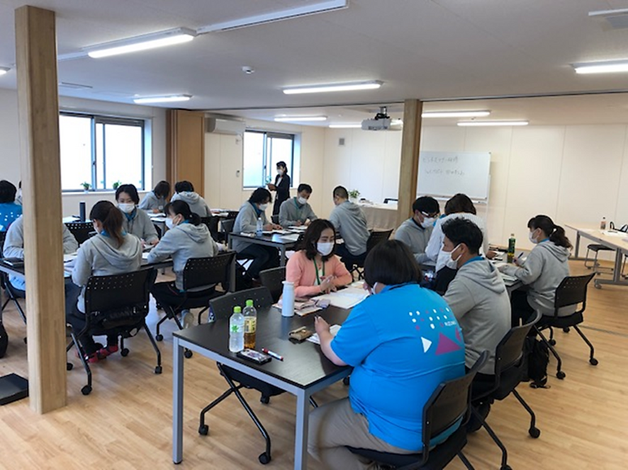 また、「リズム木曽呂Ⅱ」には、これまでの施設にはなかった「大会議室」を配置。4月中旬には、管理職向けの研修会が開かれました。本社の機能が向上したことを実感します。この「大会議室」を「木工ルーム」と呼ぶ従業員もおり、早速、リズムらしい活用が始まっています。