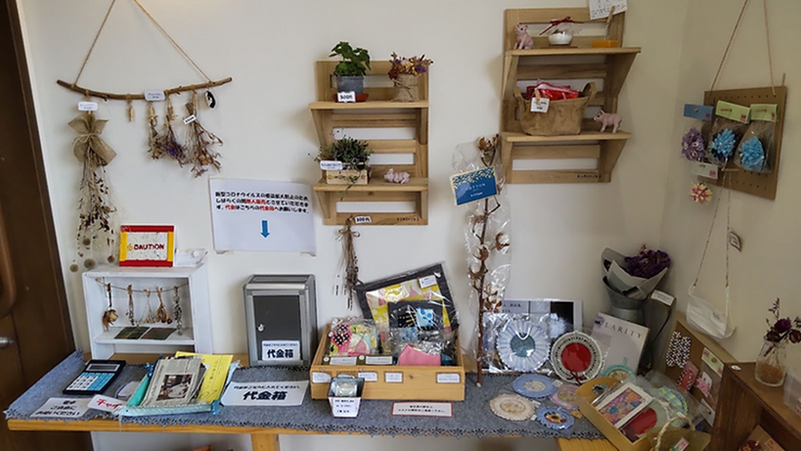 「リズム南鳩ヶ谷」に併設された直売所。手作りの雑貨が所狭しと並ぶ