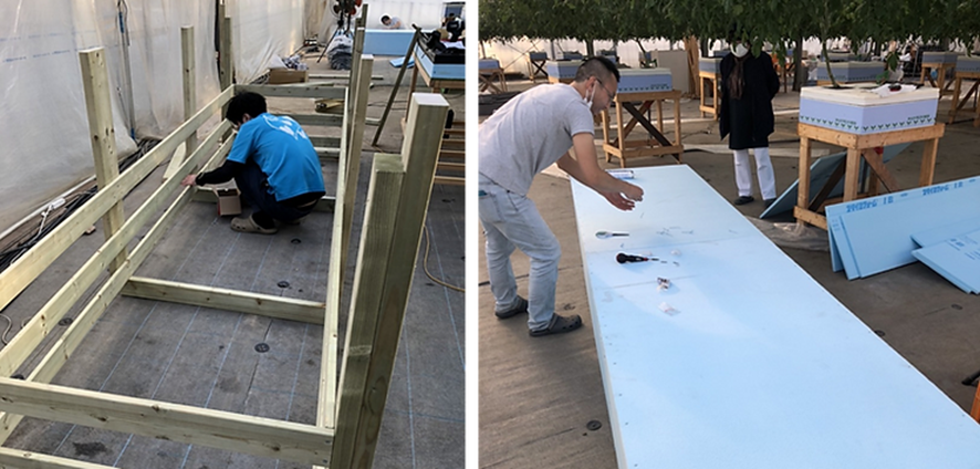 「人工ライブロック」製作に使用する水槽作り。リズムのスタッフと手作りで仕上げた